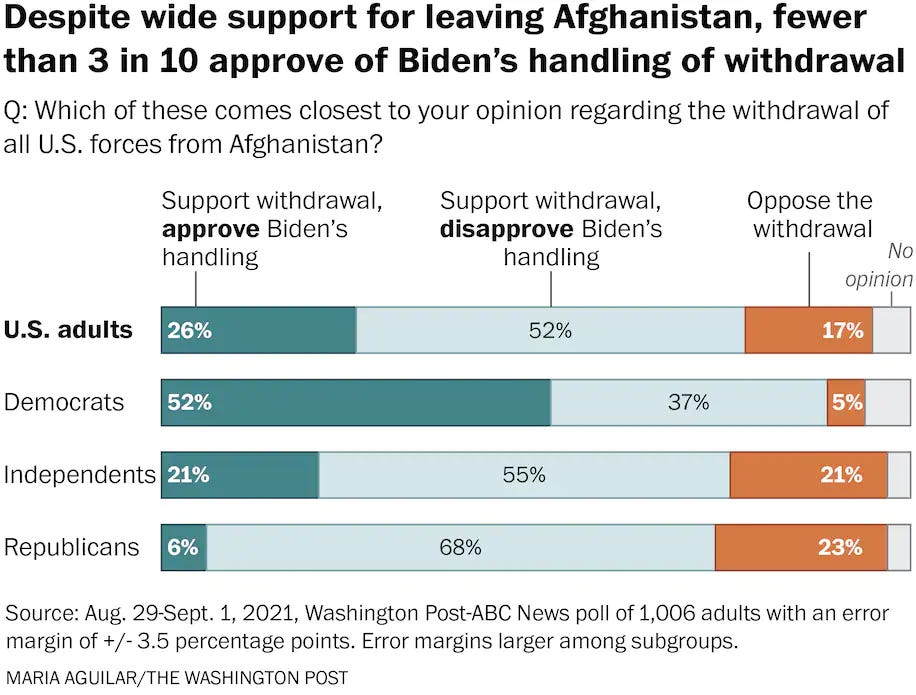 It’s a hot topic now: During the past few months, President Biden’s job approval has taken a hit. People are upset about his handling of multiple situations, including the Afghanistan withdrawal. As Washington Post writers Dan Balz, Scott Clement, and Emily Guskin conclude,