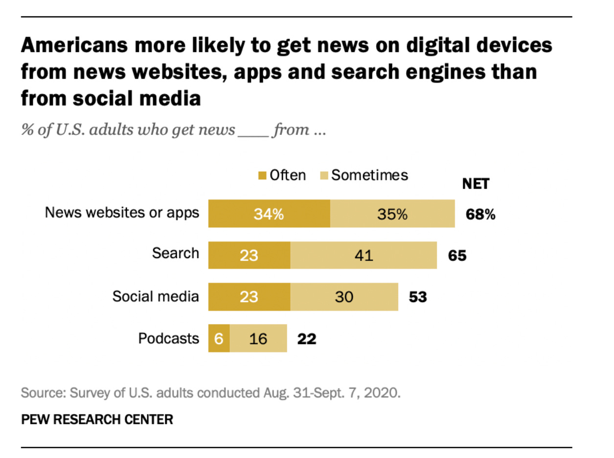 ChatGPT will almost certainly change how people get their news in the future, but I doubt it will completely take over the space. To understand why, take a look at some findings from Pew Research about where people get their news now.