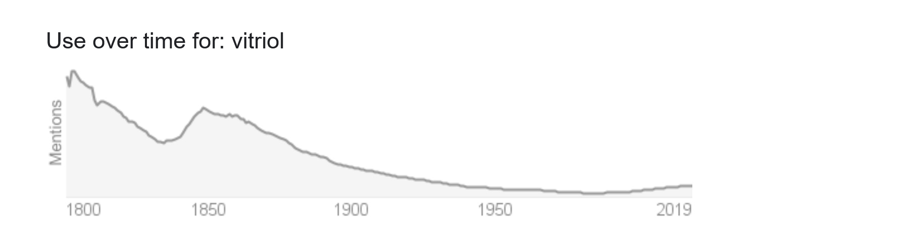 As a side note, on quickly looking up the word “vitriol,” I was surprised it was actually much more popular in the 1800s. This is according to Google: